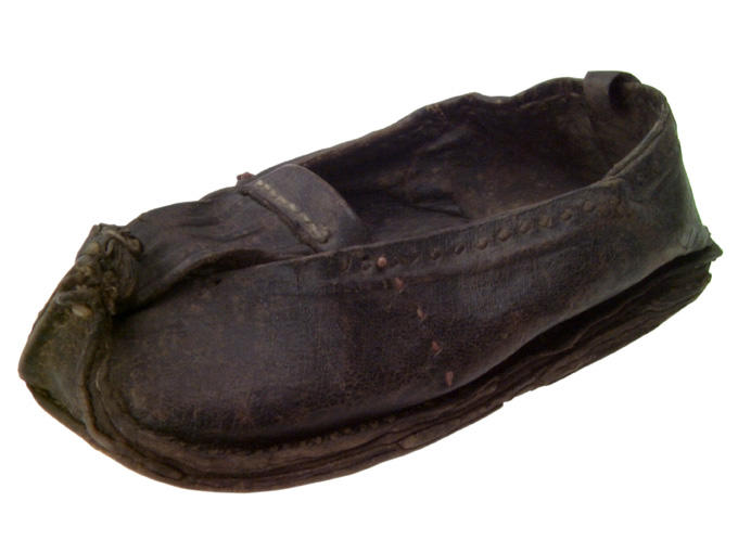 Cette œuvre relève du domaine : costume - accessoires du costume, Asie méridionale, ethnologie. Elle a été réalisée avec les matériaux et techniques suivants : cuir. Sa période de création est identifiée comme : 19e siècle.