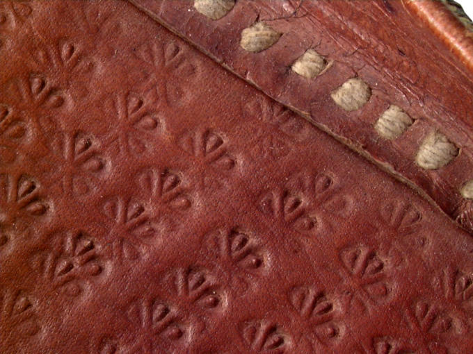 Cette œuvre relève du domaine : costume - accessoires du costume, Asie méridionale, ethnologie. Elle a été réalisée avec les matériaux et techniques suivants : cuir (brodé). Sa période de création est identifiée comme : 19e siècle.