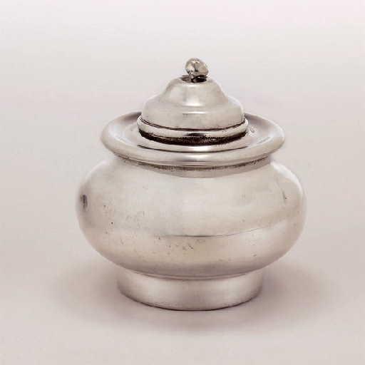 L'oeuvre a été exécutée en métal, argenté. Dimensions : Hauteur 0.08 ; Diamètre 0.07.