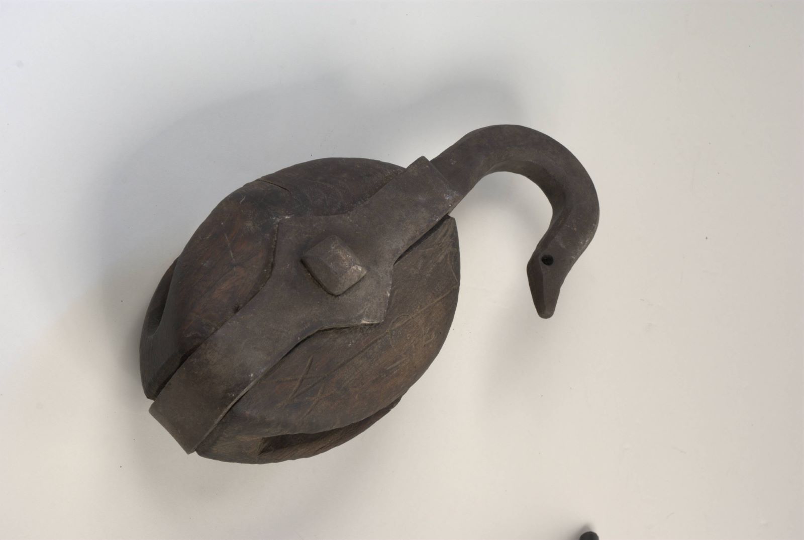 poulie simple à crochet. 3 signes gravées à la gouge