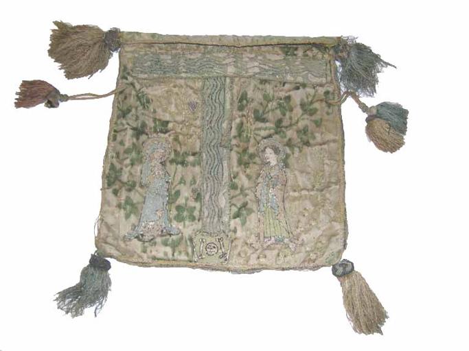L'oeuvre a été exécutée en velours coupé (brodé), fil de soie. L'oeuvre présente les dimensions suivantes : H. 22 ; l. 21. Le sujet représenté est : figures bibliques (Vierge, saint Jean l'Evangéliste),ornementation (feuillage orn). Elle a été créée durant la 15e siècle;16e siècle.