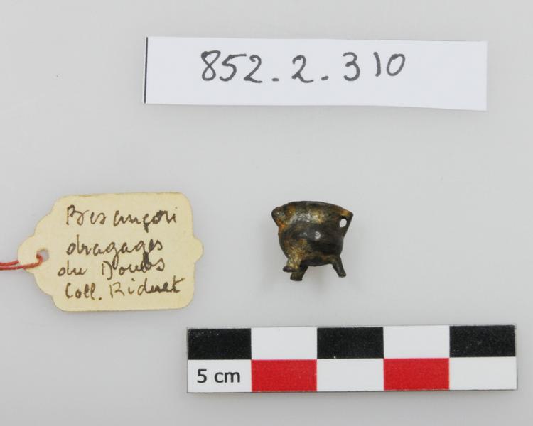 Cette œuvre relève du domaine : archéologie, médiéval, vie domestique. Elle a été réalisée avec les matériaux et techniques suivants : alliage cuivreux.