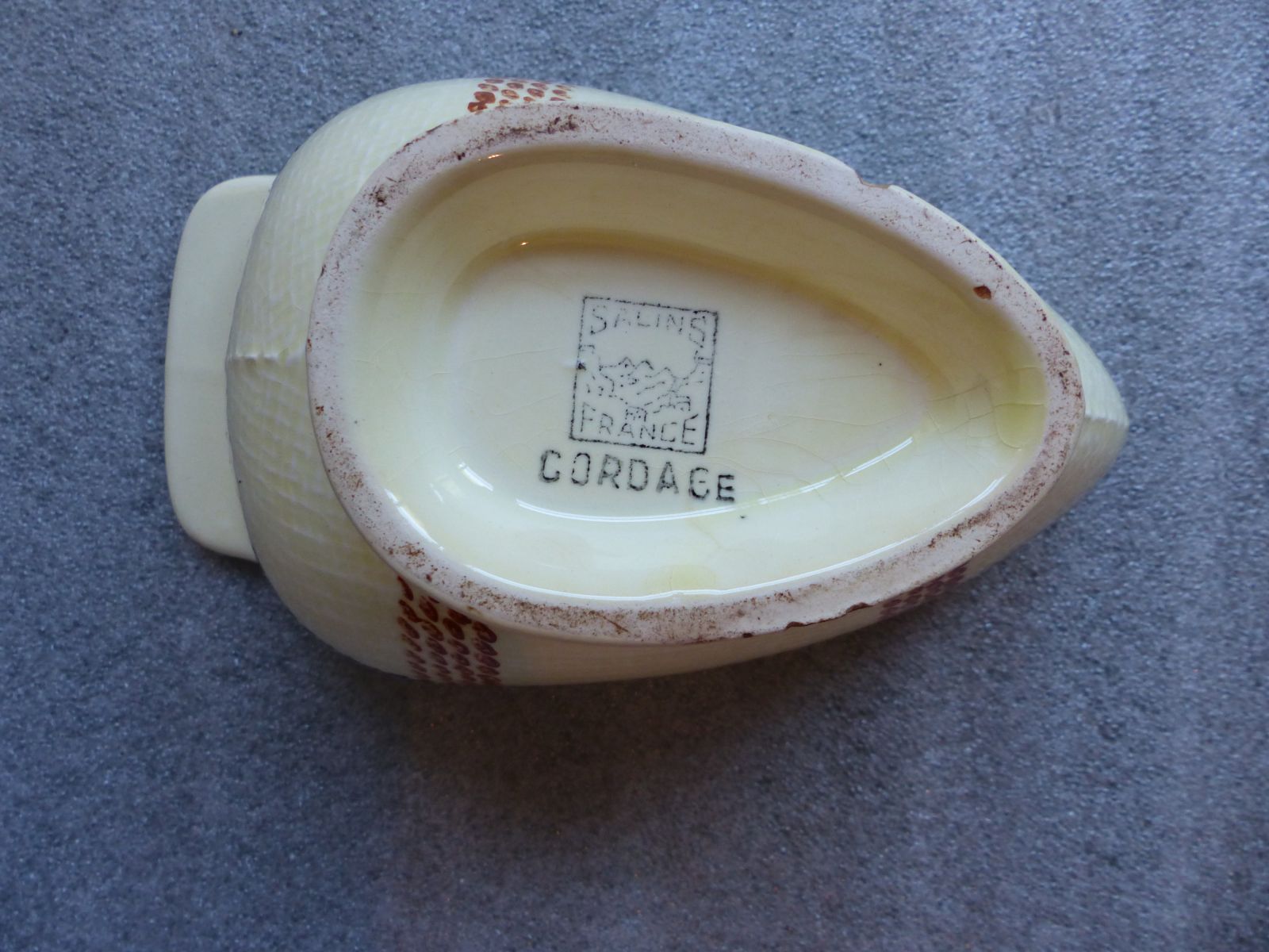 Faïencerie de Salins-les-Bains a réalisé Cordage polychrome, actuellement au musée de la Grande Saline. Le procédé technique employé est faïence. Dimensions de l'oeuvre : hauteur 7.4 cm ; longueur 18 cm ; largeur 11 cm. Elle figure : ornementation (ornement à forme géométrique : corde). Elle a été créée durant la 3e quart 20e siècle.