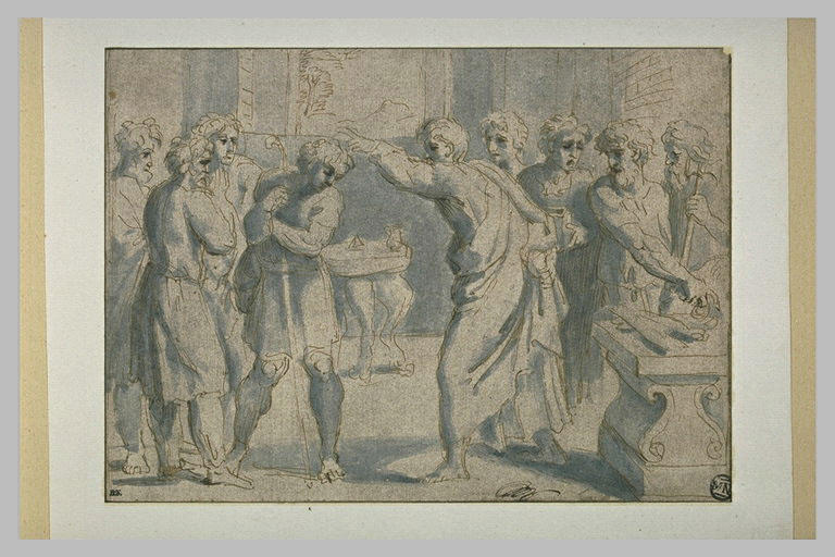 ATELIER DE RAPHAEL (d'après);anonyme puise dans le dynamisme de la l'inspiration qui donne naissance à David oint par Samuel. Exposée au musée du Louvre, cette œuvre constitue un témoignage précieux des courants esthétiques et des sensibilités qui caractérisent cette époque de mutation artistique.