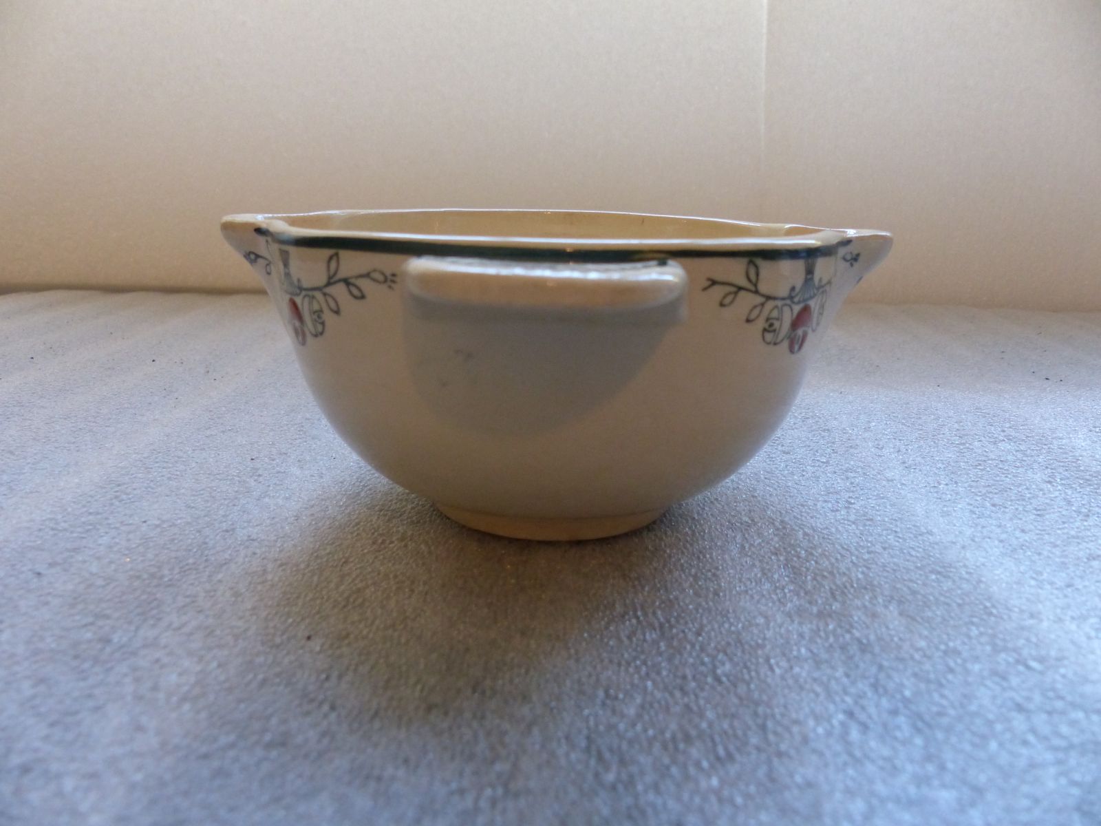 Saucière en forme de bol avec 2 anses et 2 becs verseurs.