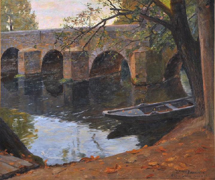 paysage (Grez-sur-Loing, barque, pont, rivière, arbre)