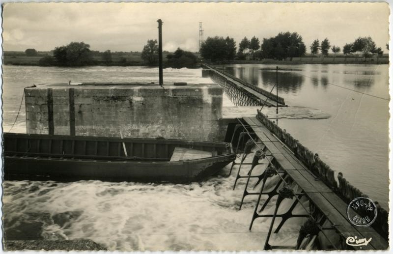 Carte postale en noir et blanc représentant une le barrage de Lechatelet