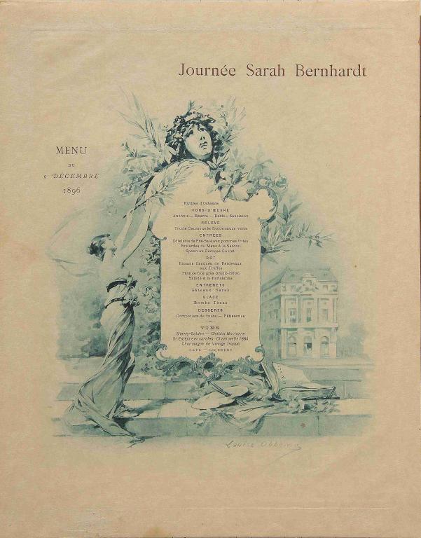 Menu de la Journée Sarah Bernhardt. 9 décembre 1896