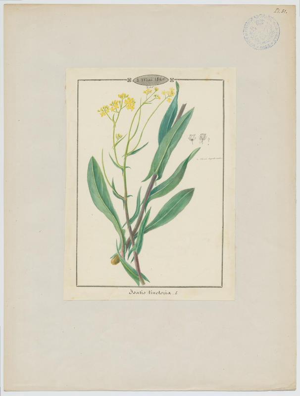Barla Jean-Baptiste (1817-1896) (attribué à) est l'auteur de Pastel des teinturiers ; Guède ; plante à fleurs, oeuvre conservée au muséum d'histoire naturelle. Il s'agit d'une oeuvre en papier, aquarelle, encre. Les dimensions de l'oeuvre sont : mesure en cm : H. 21,6 ; l. 16. Le motif représenté : représentation scientifique,représentation végétale (fleur). Cette pièce remonte à la 2e quart 19e siècle. À propos de cette pièce : Nice, 1817 ; Nice, 1896.
