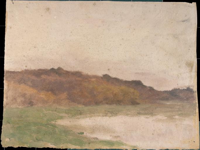 paysage est une pièce de beaux-arts, peinture réalisée par Charnay Armand (1844-1915), au musée hospitalier. Il s'agit d'une oeuvre en peinture à l'huile (papier). La pièce a pour dimensions H. 23,5 ; l. 31 (en cm). Elle figure : paysage (colline, forêt, feuillu, nappe d'eau (?)). Elle a été créée durant la 2e moitié 19e siècle;1er quart 20e siècle. Détail à relever : Charlieu (France), 06 janvier 1844 ; Marlotte (France), 06 décembre 1915.