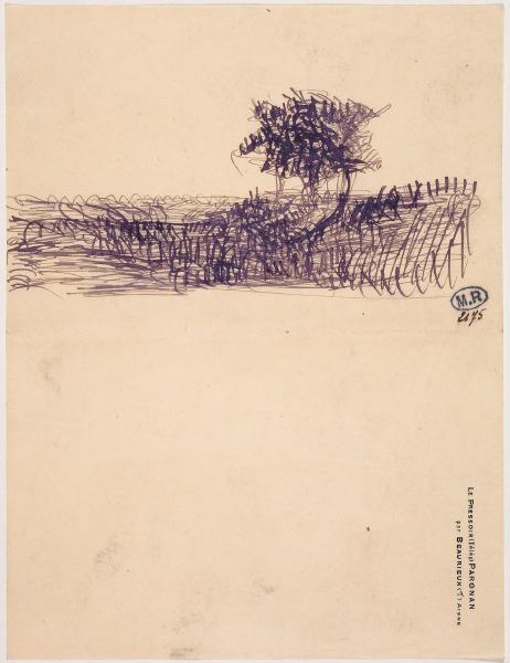 Plume et encre violette sur papier crème à en-tête : Le Pressoir (Télép.) Pargnan par Beaurieux (T) Aisne. Voir également les dessins D 2179 et D 2180.
