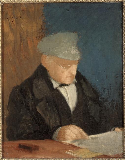 portrait (Gas Hilaire René de, vieux, assis, en buste, de trois-quarts, couvre-chef, lecture, ?)