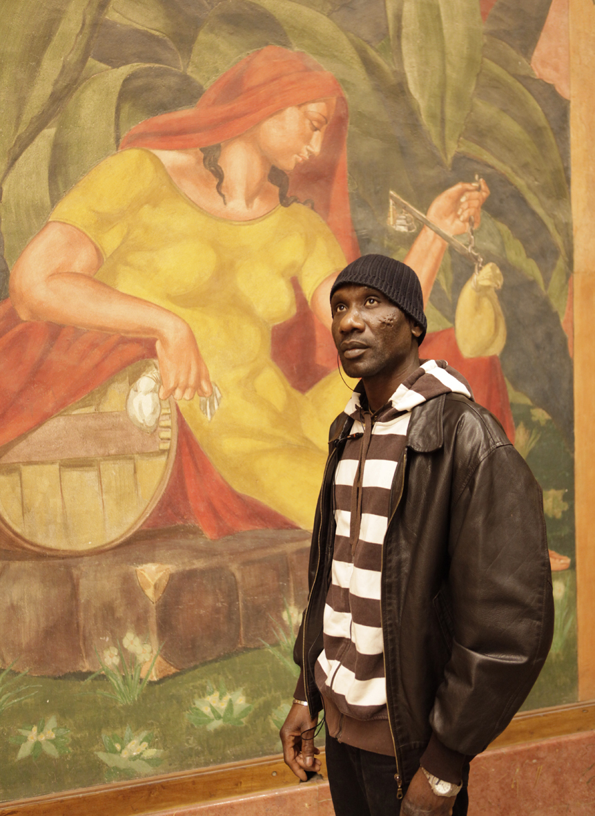 Du 7 octobre 2010 à début janvier 2011, le Palais de la Porte Dorée a été occupé par un mouvement de sans-papiers soutenu par la CGT. Mathieu Pernot a fixé sur la pellicule cette tranche de vie de l'établissement. Après avoir obtenu l'autorisation des responsables du lieu et des grévistes, le photographe a demandé aux sans-papiers qui le désiraient de poser devant les fresques du forum. Si certains ont choisi le détail devant lequel ils souhaitaient être photographiés, d'autres se sont laissés guider par l'artiste.
