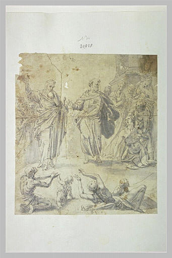 Cette œuvre relève du domaine : dessin. Elle a été réalisée avec les matériaux et techniques suivants : plume, lavis gris, encre noire, pinceau. Sa période de création est identifiée comme : 4e quart 16e siècle;1ère moitié 17e siècle.