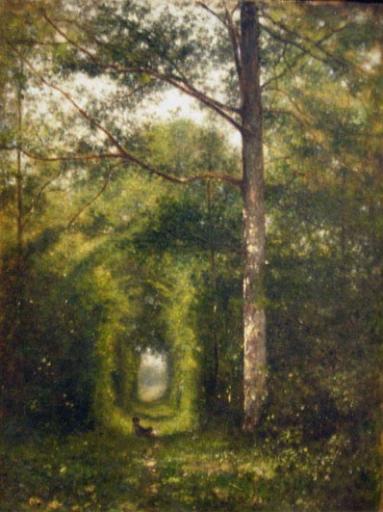 paysage (sous-bois, clairière, arbre, homme, repos)