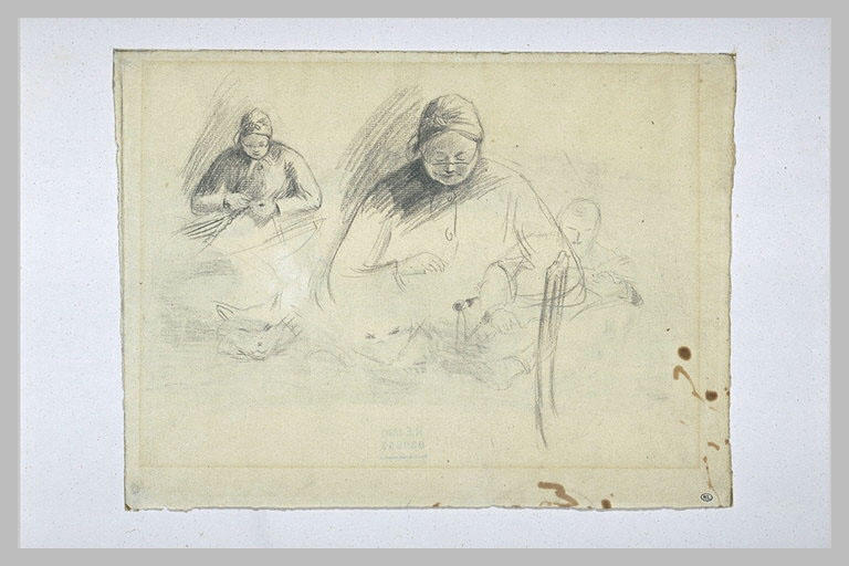 « Trois études d'une vieille femme brodant » est conservée au musée du Louvre, un établissement portant le label « Musée de France ». Ce label garantit que les collections font l'objet d'une gestion rigoureuse en matière de conservation, d'inventaire et d'accessibilité au public.