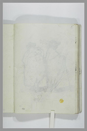 Album Dehodencq Alfred, folio 82, dessiné au verso ; Album cartonné gris à dos de toile grise comprenant 88 feuillets, dont les folios 8, 35 à 66, et 84 à 86 sont vierges. Traces de folios arrachés entre les folios 28 et 29, 32 et 33, 64 et 65, 67 et 68, 68 et 69. Album commencé dans les deux sens : il est numéroté de 1 à 34 dans un sens et, de 1a à 19a dans l'autre sens (numérotation ancienne). Croquis faits en Espagne. H : 0,210 ; L : 0,150. ; Carnet pris dans l'autre sens