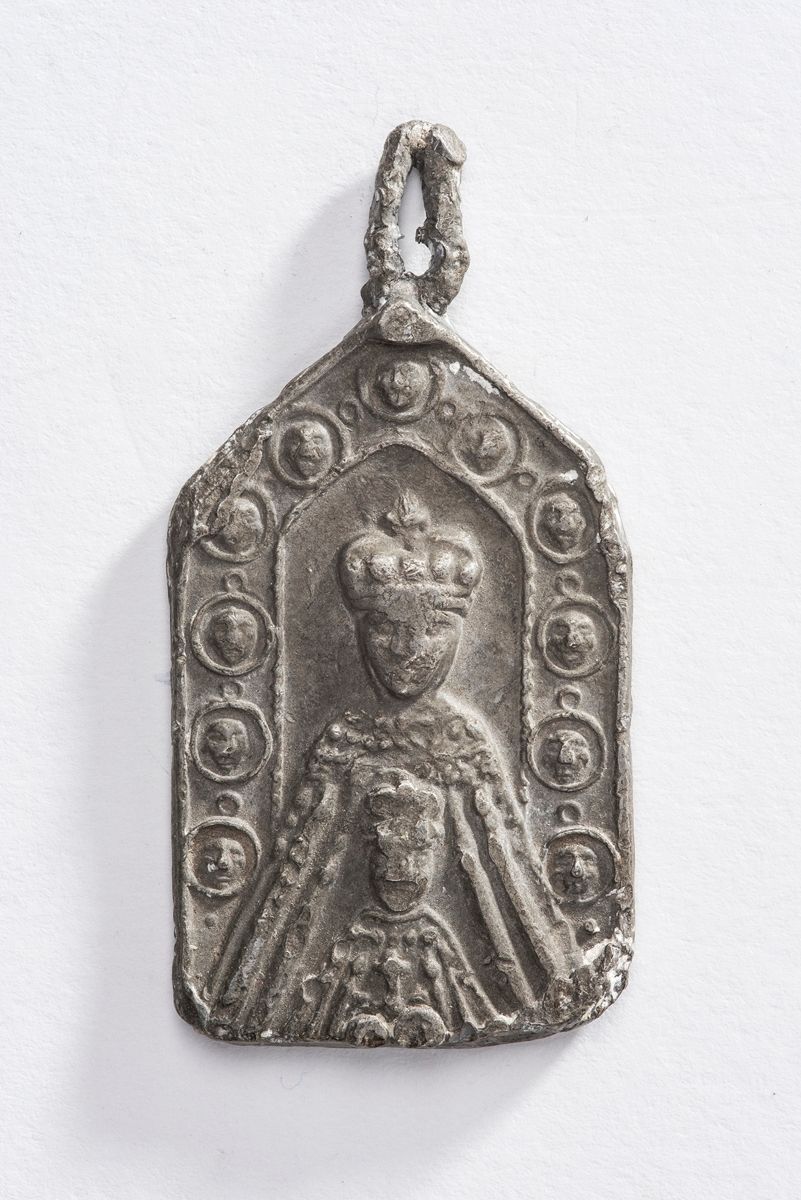 Cette œuvre relève du domaine : croyances - coutumes. Elle a été réalisée avec les matériaux et techniques suivants : étain (moulé). Sa période de création est identifiée comme : 4e quart 18e siècle.