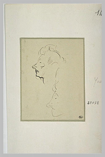 On doit Yvette Guilbert à TOULOUSE-LAUTREC ; l'oeuvre est au musée du Louvre. Cette oeuvre est réalisée en plume, encre brune. La pièce a pour dimensions H. en m 0,115 ; L. en m 0,090. L'oeuvre appartient à la 4e quart 19e siècle. Concernant cette pièce : né en 1864 ; mort en 1901.