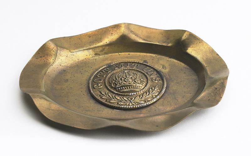 Cendrier dont les bords sont recourbés et ondulés, représentant au centre une couronne impériale et une couronne de laurier.