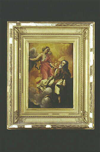 Le ravissement de sainte Thérèse d'Avila est une oeuvre de peinture, croyances - coutumes par anonyme;BERNINI Gian Lorenzo;BERNIN (dit, d'après), visible au musée d'art sacré. Cette oeuvre est réalisée en peinture à l'huile, toile, bois, doré, mouluré. Sujet représenté : figure (sainte Thérèse d'Avila, extase, nuée, voile, robe, manteau, ange, flèche, tête, rayons lumineux, ornement à forme végétale, palmette, laurier). La création de cette oeuvre remonte à la 17e siècle. Concernant cette pièce : Naples, 1598 ; Rome, 1680.