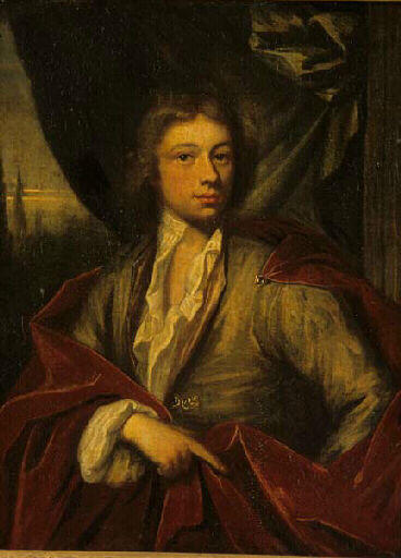 portrait d'inconnu (homme, manteau, tenture)